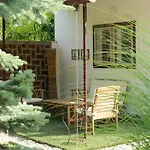Zur Selbstverpflegung stehen eine Mikrowelle, ein Wasserkocher und Küchenutensilien in einer Essecke und einem Essbereich im Freien zur Verfügung. Die Umgebung ist ideal für Windsurfen, Wandern und Reiten.